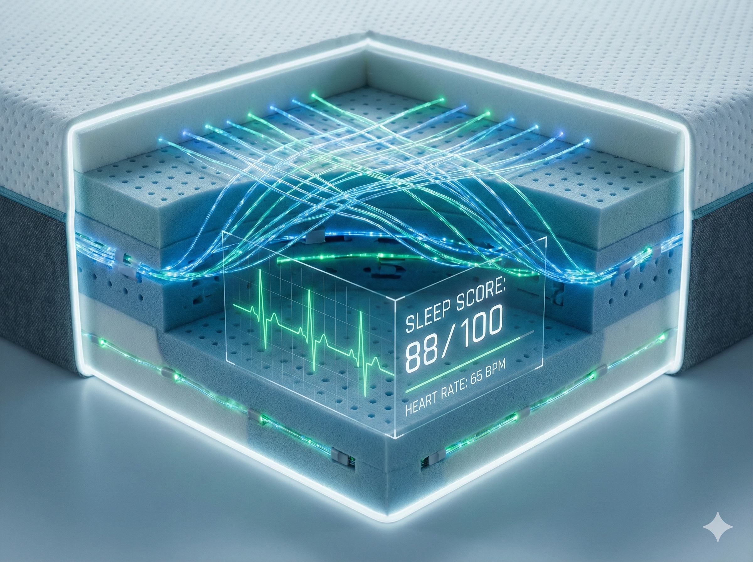 Why it stands out: No wearables required. Using Ballistocardiography, it tracks heart rate, breathing, and sleep quality through 10 inches of foam. If breathing stops (apnea), it alerts the family instantly.