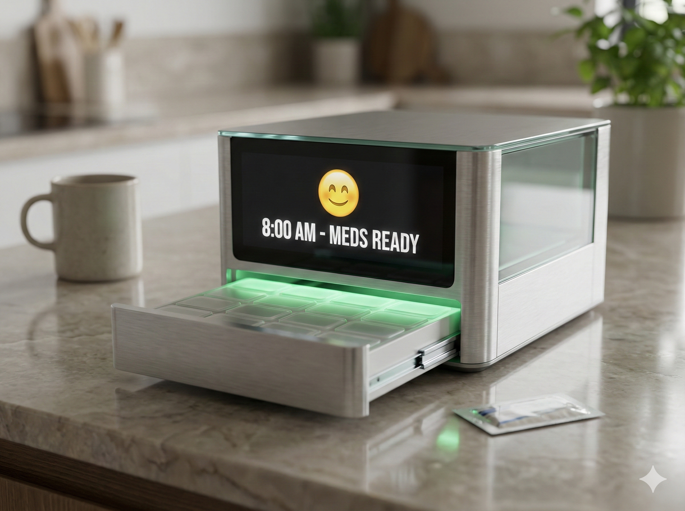 Why it stands out: It's a Cellular-Connected Vault. If a dose is missed, it calls the daughter immediately. It requires visual confirmation to unlock, preventing accidental overdoses.
