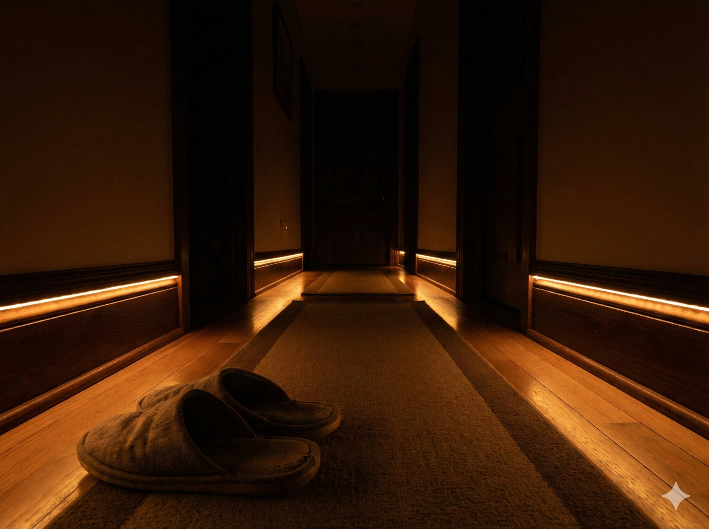 Why it stands out: These aren't standard motion sensors that leave you in the dark if you stop moving. These are Sequential LED Strips along the baseboards that light up one by one in the direction you are walking, guiding you to the bathroom like an airplane runway.